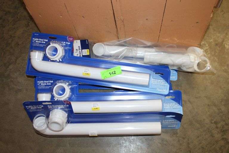 LOT 142 - DOUBLE BOWL SINK KITS (6), DRAIN UNIT (1)