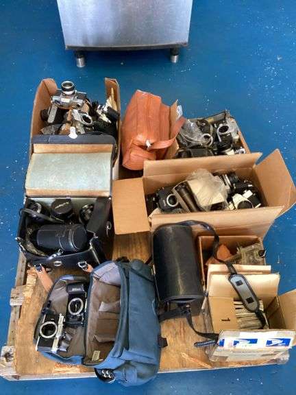 LOT 184 - Pallet Of Various SLR Cameras, Various Model Of Vintage Cameras, Various Lenses