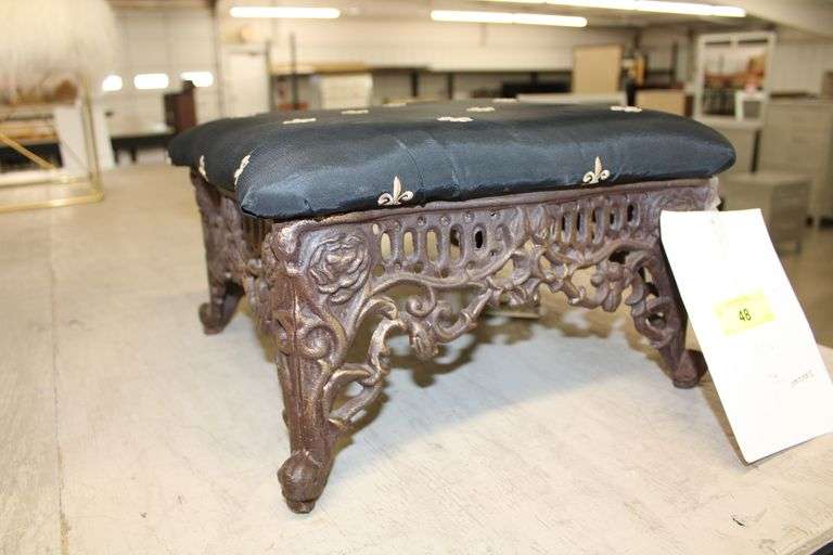 LOT 48 - CAST IRON PADDED FOOT STOOL (15" W x 15" x 9" TALL)