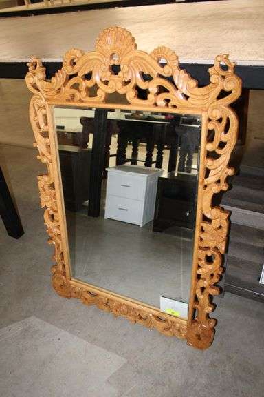 LOT 71 - WALL MIRROR - OAK FINISH DECO FRAME (O.D. 36 1/2" x 54" TALL)