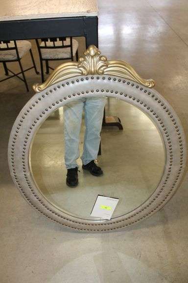 LOT 77 - UPHOLSTERED MIRROR ; VINTAGE BONE LOOK (37 1/2" wide X 44" tall)