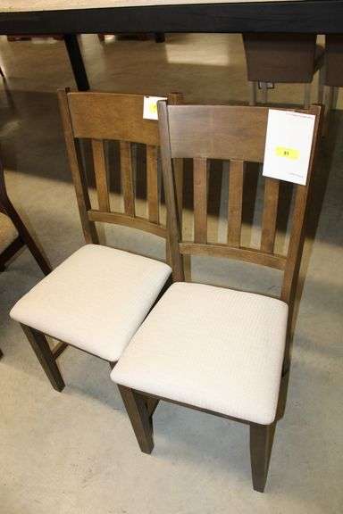 LOT 81 - ULYSSES SIDE CHAIRS; WEATHERED OAK FINISH WITH CREAM UPHOLSTERED SEAT