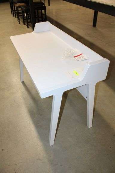LOT 88-D - WRITING DESK WITH OUTLET; WHITE FINISH ( 50" WIDE x 23 1/2" DEEP x 35" TALL)