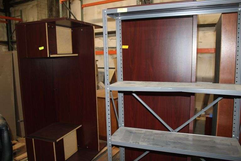 LOT 107 - 2-WOOD OFFICE DESKS & METAL SHELF