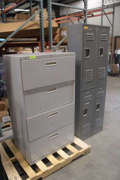 LOT 130 - FOUR-DRAWER WIDE METAL FILE CABINET 4-COMPARTMENT STORAGE LOCKERS