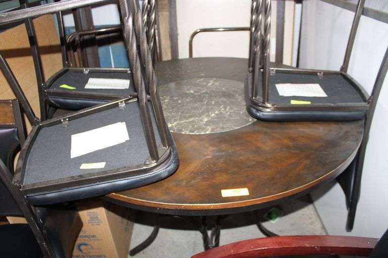 LOT 157 - ROUND TABLE WITH METAL BASE AND 4-CHAIRS
