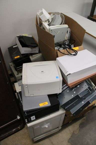 LOT 419 - PALLET OF ELECTRONICS- PRINTERS, TYPEWRITER, MONITOR & MORE