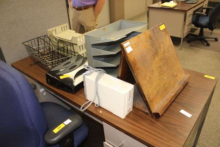 LOT 455 - GROUP OF OFFICE ITEMS AS PHOTOGRAPHED & 1- OFFICE CHAIR