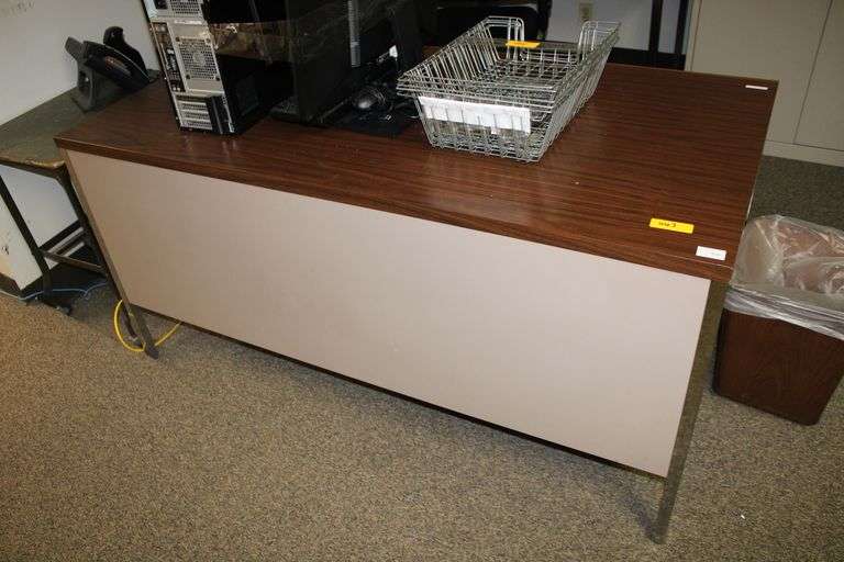 LOT 463 - FIVE-DRAWER METAL & WOOD TOP DESK *DESK ONLY