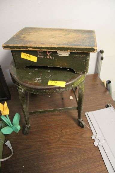 LOT 472 - VINTAGE ROLLING STOOL & WOODEN FOOT REST