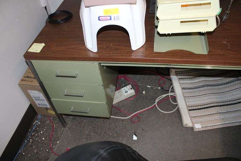 LOT 474 - METAL & WOOD THREE-DRAWER DESK *DESK ONLY