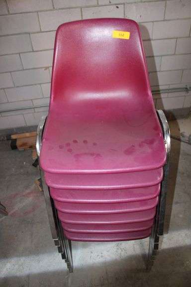 LOT 552 - 7-BURGUNDY & METAL FRAME STACKABLE CHAIRS